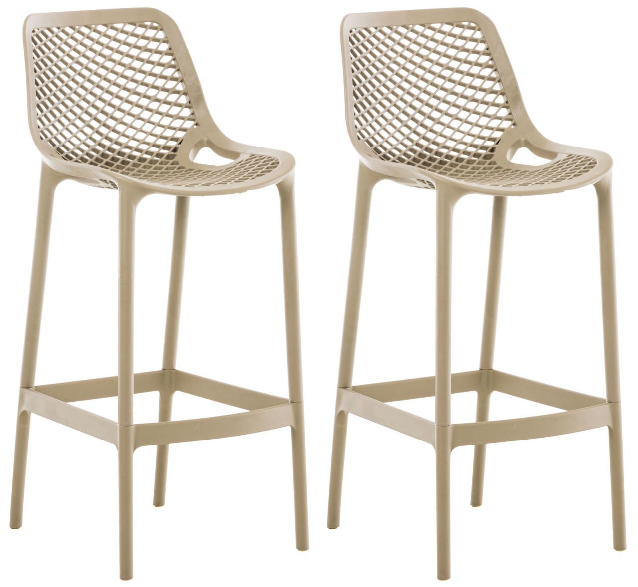 2er Set Outdoor Barhocker Air Diese äußerst schicken und praktischen Barhocker Air passen mit ihrem modernen Look in jeden Wohnbereich. Die hervorragende Verarbeitung genügt höchsten Ansprüchen – zu Hause genauso wie im Freien. Die Barhocker bestehen durchweg aus Polypropylen und sind dadurch wasserabweisend und UV-Licht beständig. Selbst häufige und intensive Sonneneinstrahlung lässt den Kunststoff nicht vergilben oder ausbleichen. Die Farbtiefe der Barhocker bleibt so lange erhalten. Nicht nur die ergonomische Form macht diesen Barhocker zu etwas Besonderem. Auch durch das Wabenmuster im Sitz werden die Barstühle Air zum absoluten Hingucker! Die angenehme Sitzhöhe von 75 cm und die umlaufende Fußstütze ermöglichen ein bequemes Sitzen über mehrere Stunden hinweg. Diese Barhocker bringen mit einem tollen Design frischen Wind sowohl in Ihr zu Hause als auch in Ihren Garten! Materialzus…