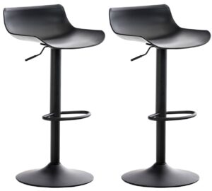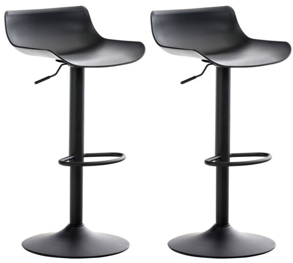 2er Set Barhocker Aveiro Der Barhocker Aveiro besteht aus einer geschwungenen Sitzschale aus Kunststoff die einen angenehmen Sitzkomfort bietet. Der Thekenhocker ist mittels eines Gaslifts höhenverstellbar und der Sitz ist um 360° drehbar, sodass er sich jeder gewünschten Sitzposition anpassen lässt. Das Gestell des Barstuhls besteht aus Metall. Der Trompetenfuß am Boden verleiht dem Barhocker die nötige Stabilität. Die integrierte Fußstütze, die sich synchron mit der Sitzhöhe einstellen lässt, trägt zu einer angenehmen Sitzposition bei und lässt Sie auch über mehrere Stunden angenehm und bequem sitzen. Unter dem Trompetenfuß befindet sich ein Bodenschoner, der Ihren Fußboden vor unschönen Kratzern bewahrt. Verschmutzungen lassen sich ganz leicht mit einem feuchten Baumwolltuch entfernen, somit ist er besonders pflegeleicht. Der Thekenhocker ist in den Farben weiß und schwarz erhältli…