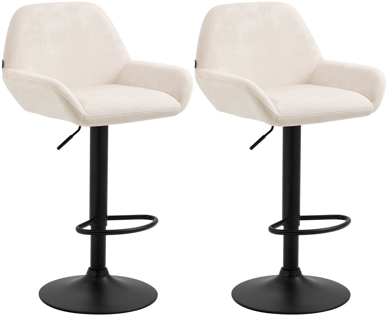2er Set Barhocker Braga Samt Der Barhocker Braga vereint Funktionalität und Komfort in einem stilvollen Design. Der gepolsterte Sitz ist mit einem pflegeleichten Samtbezug versehen. Mithilfe des Gaslifts lässt sich dieses Modell in der Wunschhöhe stufenlos einstellen, sodass er für jede Thekenhöhe bestens geeignet ist. Die Sitzfläche ist mit der Fußablage um 360° drehbar. Die Fußstütze, die einen sehr guten Sitzkomfort gewährleistet, ist synchron mit der Höhe des Sitzes verstellbar. Das Gestell besteht aus Metall, wahlweise in Chromoptik, mattschwarz oder mattweiß. Unter dem Trompetenfuß befinden sich Bodenschoner, die ein Verkratzen des Bodens verhindern. Materialzusammensetzung: 100% Polyester Ca. Maße: Gesamthöhe: 89 – 109 cm Gesamtbreite: 51 cm Gesamttiefe: 52 cm Sitzhöhe: 63 – 83 cm Sitzfläche (BxT): 35 x 37 cm Sitzpolsterstärke: 8 cm Höhe Rückenlehne: 31 cm Höhe Armlehne (vom Bo…