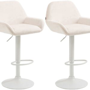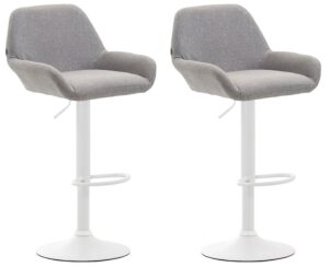 2er Set Barhocker Braga Stoff Der Barhocker Braga ist mit einem Stoffbezug versehen. Die dicke Polsterung und die hohe Rückenlehne bieten Ihrem Rücken einen optimalen Halt. Das Gestell aus matt schwarzem Metall gibt dem Barhocker die nötige Stabilität. Mittels eines Gaflifts ist der Barstuhl stufenlos höhenverstellbar. Die integrierte Fußstütze ermöglicht auch über einen längeren Zeitraum eine bequeme Sitzhaltung. Unter der Bodenplatte befindet sich ein Bodenschoner, der Ihren Fußboden vor unschönen Kratzern bewahrt. Der Barhocker ist in bis zu 6 verschiedenen Farben erhältlich. Materialzusammensetzung: 100% Polyester Ca. Maße: Gesamthöhe: 89 – 109 cm Gesamtbreite: 51 cm Gesamttiefe: 52 cm Sitzhöhe: 63 – 83 cm Sitzfläche (BxT): 35 x 37 cm Höhe Rückenlehne: 31 cm Höhe Armlehne (vom Boden / Sitz): 68 – 88 cm / 7,5 cm Max. Belastbarkeit: 120 kg Sitz: Bezug: Stoff Sitz, Arm- und Rückenleh…