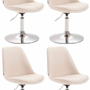 2er Set Barhocker Clawson Stoffbezug Der Barhocker Clawson vereint modernes Design mit höchstem Komfort. Er ist ideal geeignet für Ihre Küche, die Hausbar oder den Wohnbereich. Dieser Tresenstuhl besitzt einen stabilen Rahmen aus Bugholz sowie eine gepolsterte Sitzfläche und Rückenlehne. Diese Polsterung ist mit strapazierfähigem Stoff bezogen ist. Das Material ist angenehm und leicht zu reinigen. Um immer die optimale Sitzposition zu finden, ist der mühelos in der Höhe verstellbare und um 360 Grad drehbare Barhocker ideal. Für zusätzlichen Komfort verfügt der Barhocker über eine Fußstütze, die eine angenehme und aufrechte Sitzhaltung unterstützt. Der Bodenschoner unter dem Trompetenfuß schützt Ihren Fußboden vor Beschädigungen. Details: Gesamthöhe: 94 – 115 cm Gesamtbreite: 50 cm Gesamttiefe: 50 cm Sitzhöhe: 60 – 81 cm Sitzfläche (B x T): 50 x 41 cm Höhe Rückenlehne: 34 cm Durchmesse…