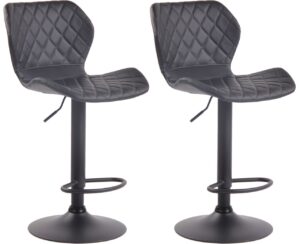 2er Set Barhocker Cork Kunstleder Dieser Barhocker verleiht jedem Raum einen exklusiven Look und besticht nicht nur durch seine hervorragenden Sitzeigenschaften, sondern auch durch sein modernes Design. Der stylisch gesteppte Sitz mit Kunstlederbezug sowie die Fußstütze ermöglichen ein bequemes Sitzen über einen längeren Zeitraum hinaus. Der Thekenhocker ist mittels Gaslift höhenverstellbar sowie um 360° drehbar. Der Trompetenfuß aus Metall ist mit einem Bodenschoner ausgestattet, der Kratzer und Beschädigungen auf dem Boden verhindert. Materialzusammensetzung: 100% Polyurethan Ca. Maße: Gesamthöhe: 88 – 109 cm Gesamtbreite: 47 cm Gesamttiefe: 51 cm Sitzhöhe: 58 – 79 cm Sitzfläche (BxT): 47 x 36 cm Höhe Rückenlehne: 32 cm Max. Belastbarkeit: 120 Kg Gewicht: 7 Kg Sitz: Hoher Sitzkomfort dank gut gepolsterter Sitzfläche Stylisch gesteppter Sitzbezug Gestell: Trompetenfuß inkl. Bodenscho…