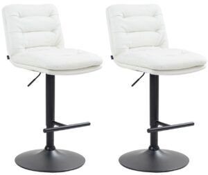 2er Set Barhocker Damar Kunstleder Der Barhocker Damar überzeugt durch modernes Design und hohen Sitzkomfort. Der dick-gepolsterte Sitz ist besonders bequem und die Rückenlehne entlastet den unteren Rücken. Die Fußstütze sorgt für zusätzlichen Komfort. Das Hocker-Gestell und der modische Bezug verleihen dem Hocker ein elegantes Äußeres. Der Sitz ist mit pflegeleichtem Kunstleder bezogen. Das Metallgestell ist höhenverstellbar und die 360-Grad-Drehfunktion sorgt für viel Bewegungsfreiheit. Das stabile Metallgestell bietet einen sicheren Stand und eine Belastbarkeit bis 120 kg. Bodenschoner schützen empfindliche Böden. Details: Gesamthöhe: 94 – 116 cm Gesamtbreite: 42 cm Gesamttiefe: 56 cm Sitzhöhe: 65 – 87 cm Sitzfläche (B x T): 42 x 40 cm Höhe der Rückenlehne: 30 cm Max. Belastbarkeit: 120 kg Gewicht: 8 kg Materialzusammensetzung: 100 % Polyurethan Sitz: Bezug: Kunstleder Sitz und Rüc…