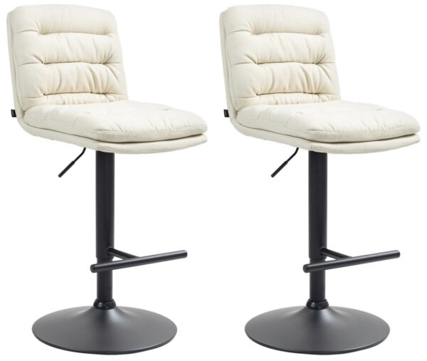 2er Set Barhocker Damar Stoff Der Barhocker Damar überzeugt durch modernes Design und hohen Sitzkomfort. Der dick-gepolsterte Sitz ist besonders bequem und die Rückenlehne entlastet den unteren Rücken. Die Fußstütze sorgt für zusätzlichen Komfort. Das Hocker-Gestell und der modische Bezug verleihen dem Hocker ein elegantes Äußeres. Der Sitz ist mit einem strapazierfähigem Stoffbezug versehen. Das Metallgestell ist höhenverstellbar und die 360-Grad-Drehfunktion sorgt für viel Bewegungsfreiheit. Das stabile Metallgestell bietet einen sicheren Stand und eine Belastbarkeit bis 120 kg. Bodenschoner schützen empfindliche Böden. Details: Gesamthöhe: 94 – 116 cm Gesamtbreite: 42 cm Gesamttiefe: 56 cm Sitzhöhe: 65 – 87 cm Sitzfläche (B x T): 42 x 40 cm Höhe der Rückenlehne: 30 cm Max. Belastbarkeit: 120 kg Gewicht: 8 kg Materialzusammensetzung: 100 % Polyester Sitz: Bezug: Stoff Sitz und Rücke…