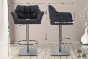 2er Set Barhocker Damaso Stoff edelstahl dunkelgrau