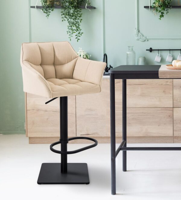 2er Set Barhocker Damaso Stoffbezug Das Set aus zwei Barhockern Damaso verbindet Eleganz mit Sitzkomfort. Mit gepolsterten Stoffbezügen eignen sich die Hocker ideal für Küche, Wohnzimmer, Esszimmer und die Hausbar. Die Rückenlehnen und Armlehnen sorgen für zusätzlichen Sitzkomfort und eine entspannte Haltung. Die Barstühle sind stufenlos höhenverstellbar, sodass die Sitzhöhe auf zwischen 58 bis 83 cm eingestellt werden kann. Die 360-Grad-Drehfunktion ermöglicht eine mühelose Bewegung. Dank der integrierten Fußablagen können die Beine entlastet werden. Die Edelstahlgestelle sind silberfarben, in matt-schwarz oder in matt-weiß erhältlich und verleihen den Hockern einen modernen Touch. Die Tresenstühle Damaso sind die perfekte Ergänzung für Bars, Küchentresen oder Lounges und bietet höchsten Sitzgenuss in stilvollem Design. Details: Gesamthöhe: 88 – 113 cm Gesamtbreite: 64 cm Gesamttiefe…