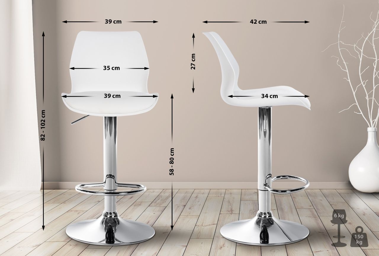 2er Set Barhocker Gilbert Das Barhocker-Set Gilbert kombiniert modernes Design mit funktionalem Komfort in doppelter Ausführung. Die Sitze aus strapazierfähigem Kunststoff und die Bezüge aus hochwertigem Kunstleder machen sie zu langlebigen Begleitern in jeder Küche, Bar oder jedem Esszimmer. Durch individuelle Höhenverstellungen und 360° Drehfunktionen lassen sich die Hocker leicht an jede Situation anpassen. Solide Trompetenfüße gewährleisten Stabilität, während integrierte Fußstützen zusätzlichen Komfort bieten. Materialzusammensetzung: 100 % Polyurethan (Kunstleder) Ca. Maße: Gesamthöhe: 82 – 102 cm Gesamtbreite: 39 cm Gesamttiefe: 42 cm Höhe Rückenlehne: 27 cm Sitzhöhe: 58 – 80 cm Sitzfläche (BxT): 39 x 34 cm Höhe Rückenlehne: 27 cm Max. Belastbarkeit: 150 kg Gewicht: 6 kg Sitz: Material: Kunstleder Höhenverstellbar Sitz um 360° drehbar Gestell: Trompetenfuß inkl. Bodenschoner Ma…