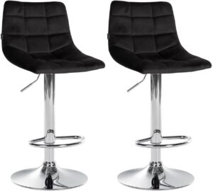 2er Set Barhocker Jerry Samt Der elegante und stilvolle Barhocker Jerry besticht durch seinen höhenverstellbaren Trompetenfuß und der dazugehörigen Fußstütze, welche ein komfortables Sitzgefühl gewährleistet. Die Höhe des Hockers kann einfach und schnell an Ihre Bedürfnisse angepasst werden, damit er perfekt zu Ihrem Tisch oder Ihrer Theke passt. Der Barhocker ist außerdem um 360° drehbar, sodass Sie sich frei bewegen können. Der Bezug des Hockers besteht aus weichem Samt und ist mit einem klassischen Steppmuster versehen. Das stabile Metallgestell des Hockers ist in der Farbe chrom oder schwarz erhältlich und sorgt für eine hohe Stabilität und Langlebigkeit. Das minimalistische und moderne Design des Hockers passt sich nahtlos in jede Einrichtung ein. Der Küchenhocker ist leicht zu montieren und einfach zu reinigen. Für die Reinigung reicht ein feuchtes Baumwolltuch zum abwischen bei…