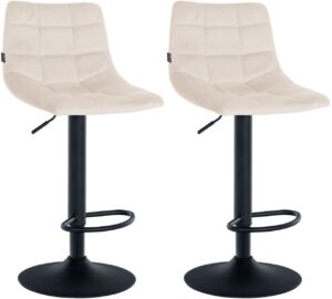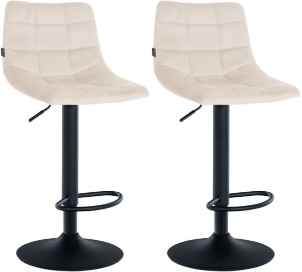 2er Set Barhocker Jerry Samt Der elegante und stilvolle Barhocker Jerry besticht durch seinen höhenverstellbaren Trompetenfuß und der dazugehörigen Fußstütze, welche ein komfortables Sitzgefühl gew...