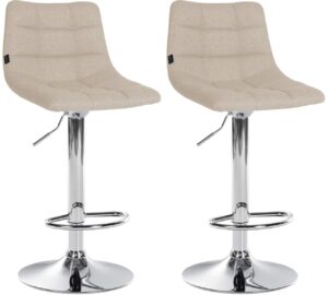 2er Set Barhocker Jerry Stoff Der elegante und stilvolle Barhocker Jerry besticht durch seinen höhenverstellbaren Trompetenfuß und der dazugehörigen Fußstütze, welche ein komfortables Sitzgefühl gewährleistet. Die Höhe des Hockers kann einfach und schnell an Ihre Bedürfnisse angepasst werden, damit er perfekt zu Ihrem Tisch oder Ihrer Theke passt. Der Barhocker ist außerdem um 360° drehbar, sodass Sie sich frei bewegen können. Der Bezug des Hockers besteht aus weichem Stoff und ist mit einem klassischen Steppmuster versehen. Das stabile Metallgestell des Hockers ist in der Farbe chrom oder schwarz erhältlich und sorgt für eine hohe Stabilität und Langlebigkeit. Das minimalistische und moderne Design des Hockers passt sich nahtlos in jede Einrichtung ein. Der Küchenhocker ist leicht zu montieren und einfach zu reinigen. Für die Reinigung reicht ein feuchtes Baumwolltuch zum abwischen b…