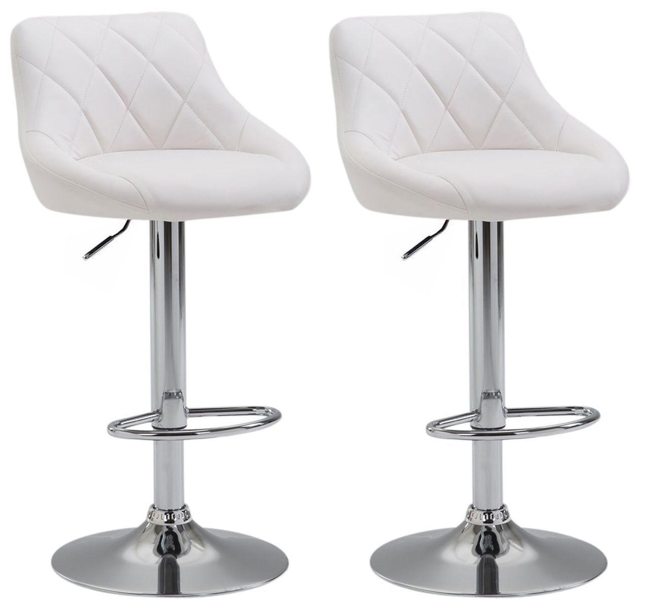 2er Set Barhocker Lazio Dieser Hocker besticht durch sein stillvolles Design. Der Sitz ist mit Kunstleder bezogen und mit aufwendigen Ziernähten verarbeitet. Mithilfe des Gaslifts lässt sich dieses Modell in der Wunschhöhe stufenlos einstellen, sodass er für jede Thekenhöhe bestens geeignet ist. Die Fußstütze, die einen sehr guten Sitzkomfort gewährleistet, ist synchron mit der Höhe des Sitzes verstellbar. Die Sitzfläche ist mit der Fußablage um 360° drehbar. Materialzusammensetzung: 100% Polyurethan Ca. Maße: Gesamthöhe: 83-104 cm Gesamtbreite: 46 cm Gesamttiefe: 49 cm Sitzhöhe: 60-81 cm Sitzfläche (BxT): 33 x 36 cm Höhe Rückenlehne: 25 cm Durchmesser Bodenplatte: 38,5 cm Max. Belastbarkeit: 120 kg Gewicht: 7 kgSitz: Leicht abgerundete Rücklehne für besseren Sitzkomfort Stilvolle Ziernähte Gestell: Material: Metall in Chromoptik Stilvolle Fußstütze Trompetenfuß inkl. Bodenschoner Bes…