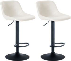 2er Set Barhocker Loft Das 2er Set Barhocker Loft verleiht jedem Raum eine exklusive Note und überzeugt nicht nur durch seine hervorragenden Sitzeigenschaften, sondern auch durch sein modernes Design. Bequeme Rückenlehnen und die angenehme Polsterung der Sitze bieten einen hohen Komfort. Die Sitzflächen sind wahlweise in Stoff, Samt oder Kunstleder erhältlich. Trompetenfüße ermöglichen den Tresenstühlen eine 360° Drehfunktion. Ebenso besitzen sie jeweils eine Fußstütze, wodurch ein angenehmes Sitzen über eine lange Zeit gewährleistet ist. Die Metall-Gestelle in Schwarz sind höhenverstellbar und bieten einen sicheren Stand. Außerdem ist das Gestell mit Bodenschonern ausgestattet, um ein Zerkratzen der Böden zu vermeiden. Durch ihre unterschiedlichen Farb- und Materialkombinationen sind diese Thekenstühle immer eine ausgezeichnete Wahl, ob für die Küche, Wohnzimmer, Lobby oder Esszimmer…