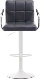 2er Set Barhocker Lucy V2 Im modernen, zeitlosen Design begeistert dieses Set aus zwei Barhockern. Rückenlehnen, Armlehnen und Fußstützen sorgen für eine angenehme Sitzhaltung, so lassen sich lange Abende entspannt geniessen. Die Sitzflächen sind um 360° drehbar und ihre ergonomische Form passt sich perfekt dem Rücken an. Die Oberflächen aus Kunstleder sind sehr leicht zu reinigen. Durch die stufenlose Höhenverstellbarkeit des Gasliftes ist dieser Barhocker universell einsetzbar und für alle Thekenhöhen geeignet. Materialzusammensetzung: 100% Polyurethan Ca. Abmessungen: Gesamthöhe: 91 – 112 cm Gesamtbreite: 54 cm Gesamttiefe: 46 cm Sitzhöhe: 61 – 81 cm Sitzfläche (BxT): 45 x 39 cm Höhe Rückenlehne: 30,5 cm Polsterdicke: 8 cm Durchmesser Bodenplatte: 38,5 cm Sitz: Bezug: Kunstleder Großzügige Arm- und Rückenlehne Sitz und Rückenlehne bequem gepolstert Gestell: Material: Metall in Chro…