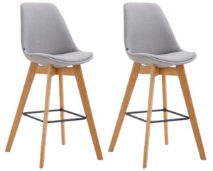 Das 2er Set Barhocker Metz ist originell und gemütlich zugleich Das Set Barhocker Metz eine solide und schöne Sitzgelegenheit aus zwei Barhockern für jeden Tag! Es verleiht jedem Raum einen exklusiven Look und besticht nicht nur durch hervorragende Sitzeigenschaften, sondern auch durch sein modernes Design. Den Sitz können Sie aus vier verschiedenen Varianten auswählen, ob als Sitzschale aus stabilem Kunststoff mit komfortabler Kunstlederpolsterung, als kompletter Stoffbezug, als Kunstlederbezug oder Samtbezug mit Polsterung im Sitz- und Rückenbereich. Die Rückenlehne gibt zusammen mit der Fußstütze den nötigen Halt. Das Eichenholzgestell wird durch die Fußablage aus Metall zusätzlich stabilisiert und trägt den formschönen Sitz. Das Gestell ist in mehreren Farben erhältlich und lässt sich somit in verschiedenste Einrichtungen integrieren. Materialzusammensetzung: 100% Polyester Ca. Ma…