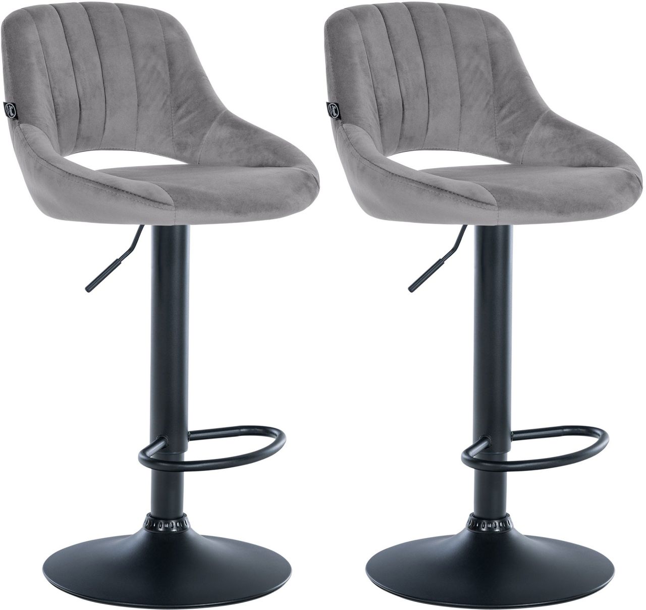 2er Set Barhocker Milet Samt Moderne Optik und eine hochwertige Qualität finden sich im Barhocker Milet. Der angenehm gepolsterte Hockersitz ist mit einem schönen und pflegeleichten Samt-Bezug versehen und die niedrige Rückenlehne bietet Unterstützung im Lendenwirbelbereich. Die Höhenverstellbarkeit des Metallgestells ermöglicht es Ihnen, die perfekte Sitzhöhe zu finden, und die 360-Grad-Drehfunktion sorgt für viel Bewegungsfreiheit. Die integrierte Fußstütze bietet zusätzlichen Sitzkomfort. Schließlich ist der Barstuhl mit Bodenschonern ausgestattet, sodass auch empfindliche Untergründe geschont werden. Materialzusammensetzung: 100% Polyester Ca. Maße: Gesamthöhe: 85 – 106 cm Gesamtbreite: 47 cm Gesamttiefe: 48 cm Sitzhöhe: 60 – 81 cm Sitzfläche (B x T): 32 x 38 cm Höhe Rückenlehne: 27 cm Max. Belastbarkeit: 120 kg Gewicht: 7 kg Sitz: Bezug: Samt (100% Polyester) Angenehme Sitzpositi…