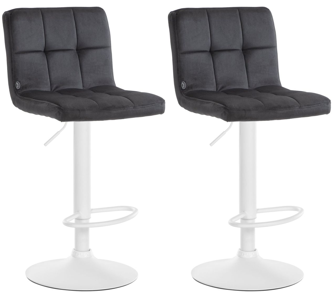 2er Set Barhocker Peru Samt Das 2er Set Barhocker Peru Samt bietet eine funktionale und stilvolle Sitzlösung für Küchen- und Barbereiche. Die Höhenverstellbarkeit und die 360-Grad-Drehfunktion der Barstühle ermöglichen eine flexible Anpassung an verschiedene Umgebungen und Bedürfnisse. Der gesteppte Samtbezug und das robuste Metallgestell sorgen für eine dauerhafte Nutzung und einfache Pflege. Die Trompetenfüße der Hocker sind mit integrierten Fußstützen ausgestattet, die zusätzlichen Komfort bieten, während Bodenschoner die Fußböden vor Abnutzung schützen. Das Set ist einfach zu montieren, was eine schnelle und unkomplizierte Inbetriebnahme ermöglicht. Materialzusammensetzung: 100% Polyester Ca. Maße: Gesamthöhe: 94-114 cm Gesamtbreite: 46 cm Gesamttiefe: 47 cm Sitzhöhe: 64-84 cm Höhe Rückenlehne: 30 cm Breite Rückenlehne: 46 cm Max. Belastbarkeit: 110 kg Gewicht: 8 kg Sitz: Bezug mi…