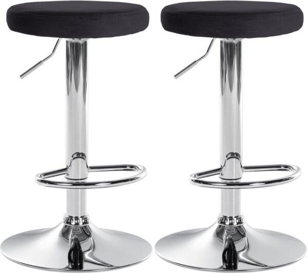 2er Set Barhocker Ponte mit Samtbezug Dieser Barhocker bietet mit seinen hochwertigen Materialien, wie dem Samtbezug, nicht nur ein angenehmes Sitzgefühl, sondern verleiht dem Hocker auch eine moderne Note. Ausgestattet mit einer leichtgängigen 360° Drehmechanik und einer einfachen Hebelbedienung zur stufenlosen Höhenverstellung, bietet dieser Küchenhocker Komfort und Anpassungsfähigkeit. Sein robustes Gestell, wahlweise aus Metall in Chromoptik, Mattschwarz oder Mattweiß, mit einer runden Bodenplatte, gewährleistet Stabilität und Langlebigkeit. Die integrierte Fußablage sorgt für zusätzlichen Komfort und eine entspannte Sitzhaltung. Unter dem Trompetenfuß befinden sich Bodenschoner, die ein Verkratzen des Bodens verhindern. Zudem ermöglichen pflegeleichte Oberflächen eine mühelose Reinigung und Pflege dieses Hockers. Materialzusammensetzung: 100% Polyester Ca. Maße: Gesamthöhe: 60 – …