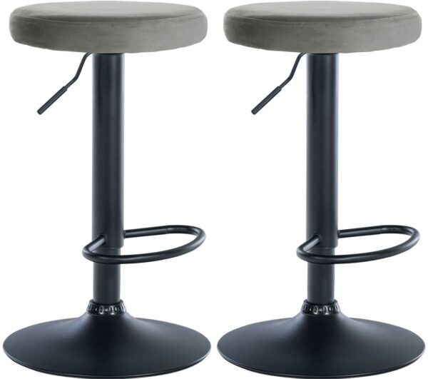 2er Set Barhocker Ponte mit Samtbezug Dieser Barhocker bietet mit seinen hochwertigen Materialien, wie dem Samtbezug, nicht nur ein angenehmes Sitzgefühl, sondern verleiht dem Hocker auch eine moderne Note. Ausgestattet mit einer leichtgängigen 360° Drehmechanik und einer einfachen Hebelbedienung zur stufenlosen Höhenverstellung, bietet dieser Küchenhocker Komfort und Anpassungsfähigkeit. Sein robustes Gestell, wahlweise aus Metall in Chromoptik, Mattschwarz oder Mattweiß, mit einer runden Bodenplatte, gewährleistet Stabilität und Langlebigkeit. Die integrierte Fußablage sorgt für zusätzlichen Komfort und eine entspannte Sitzhaltung. Unter dem Trompetenfuß befinden sich Bodenschoner, die ein Verkratzen des Bodens verhindern. Zudem ermöglichen pflegeleichte Oberflächen eine mühelose Reinigung und Pflege dieses Hockers. Materialzusammensetzung: 100% Polyester Ca. Maße: Gesamthöhe: 60 – …