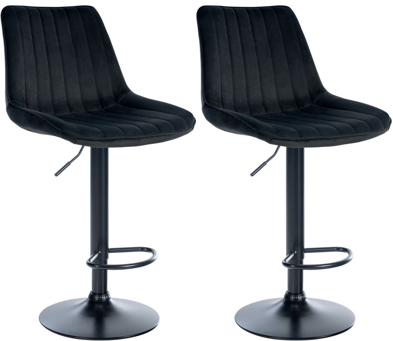 2er Set Barhocker Toni Samt Dieses moderne Barhockerset kombiniert zeitloses Design mit optimalem Sitzkomfort. Der gepolsterte Sitz und die Rückenlehne ermöglichen stundenlanges bequemes Sitzen. Mit pflegeleichtem Samtbezug und stabilem Metallgestell inklusive Trompetenfuß bieten die Hocker höchste Stabilität. Frei wählbare Farbkombinationen passen sich jedem Wohnambiente an. Die geschwungene Fußstütze und der Gaslift für stufenlose Höhenverstellung machen die Hocker ideal für jede Theke. Genießen Sie modernes Design, erstklassigen Komfort und maximale Anpassungsfähigkeit mit diesem Barhockerset. Materialzusammensetzung: 100% Polyester Ca. Maße: Gesamthöhe: 91 – 112 cm Gesamtbreite: 49,5 cm Gesamttiefe: 50 cm Sitzhöhe: 58 – 79 cm Sitzfläche (BxT): 49 x 39 cm Sitzpolsterstärke: 3 cm Höhe Rückenlehne: 32 cm Gewicht: 6 kg Sitz: Bezug: Samt Sitz und Rückenlehne bequem gepolstert Leicht ab…