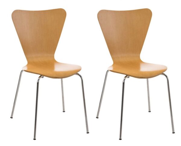 2x Besucherstuhl Calisto Dieser Besucherstuhl ist ideal für Wartezimmer, Messen und sonstige Veranstaltungen geeignet. Neben Optik und zeitlosem Design zeichnet sich dieser Besucherstuhl besonders durch seine ergonomisch geformte Sitzfläche aus, die auch längere Sitzphasen nicht anstrengend werden lässt. Der Sitz besteht aus lackiertem Holz (die Farben “Eiche” und “Walnuss” sind aus Echtholzfurnier). Das Gestell aus Metall in Chromoptik sorgt für einen stabilen und sicheren Stand. Bei Nichtgebrauch können die Stühle gestapelt und platzsparend gelagert werden. Ca. Maße: Gesamthöhe: 85 cm Gesamtbreite: 45 cm Gesamttiefe: 49 cm Sitzhöhe: 46 cm Sitzfläche (BxT): 43 x 38 cm Höhe Rückenlehne (niedrigster/höchster Punkt): 38 / 43 cm Breite Rückenlehne: 43 cm Max. Belastbarkeit: 120 kg Sitz: Material: Holz Angenehme Sitzposition durch Rückenlehne Gestell: Material: Metall in Chromoptik Stabil…