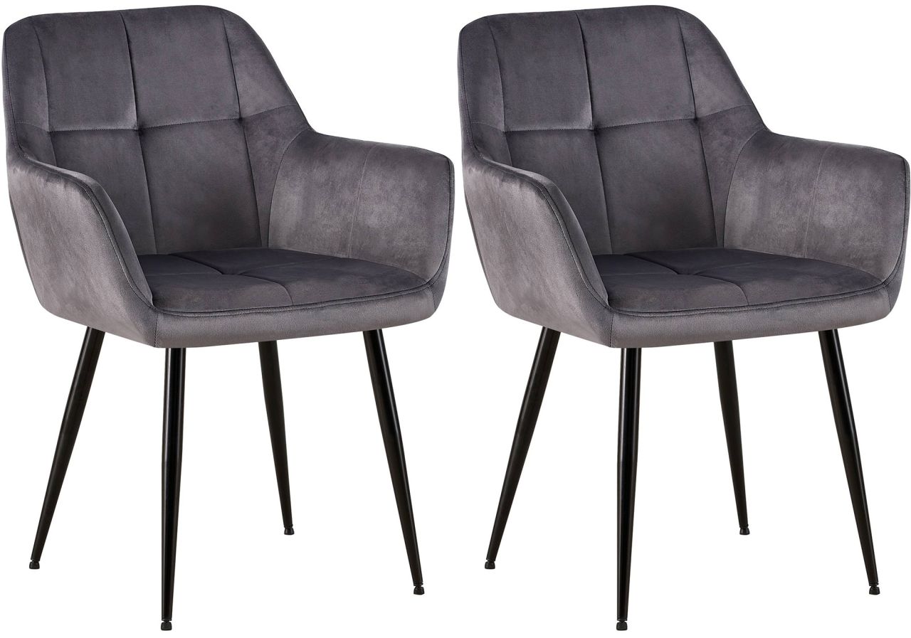 2er Set Esszimmerstuhl Emia Samt Der Esszimmerstuhl bietet nicht nur Sitzkomfort, sondern präsentiert sich auch in einem modernen Design. Mit seiner hohen Rückenlehne und der bequemen Polsterung ermöglicht er angenehmes Sitzen, selbst über längere Zeiträume. Er steht stabil auf einem stabilen 4-Fuß Metallgestell und verfügt über Bodenschoner, die den Boden vor Kratzern schützen. Seine pflegeleichten Materialien ermöglichen eine schnelle und unkomplizierte Reinigung zu jeder Zeit. Materialzusammensetzung: 100% Polyester Ca. Maße: Gesamthöhe: 84 cm Gesamtbreite: 56,5 cm Gesamttiefe: 61 cm Höhe Rückenlehne: 37 cm Höhe Armlehne (ab Boden): 66,5 cm Sitzhöhe: 47 cm Sitzfläche (BxT): 41 x 46 cm Max. Belastbarkeit: 150 kg Gewicht: 5,9 kg Sitz: Bezug: Samt Angenehme Sitzposition durch Rückenlehne Sehr bequeme Polsterung Gestell: Material: Metall matt schwarz Stabiles Vierfußgestell Sicherer St…