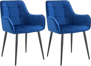 2er Set Esszimmerstuhl Ferndale Samt dunkelblau