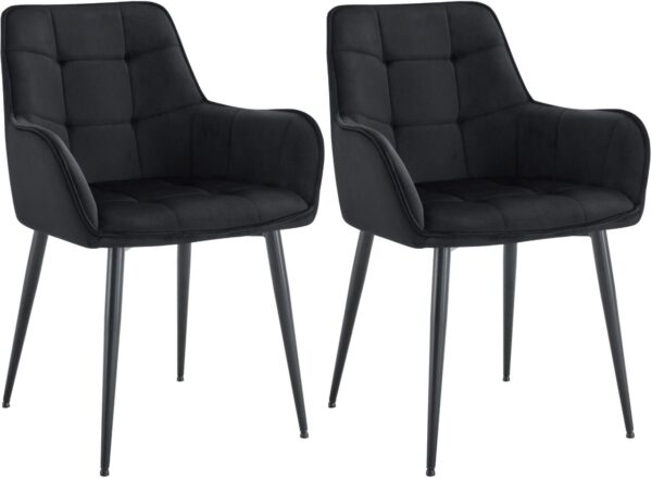 2er Set Esszimmerstuhl Ferndale Samt schwarz