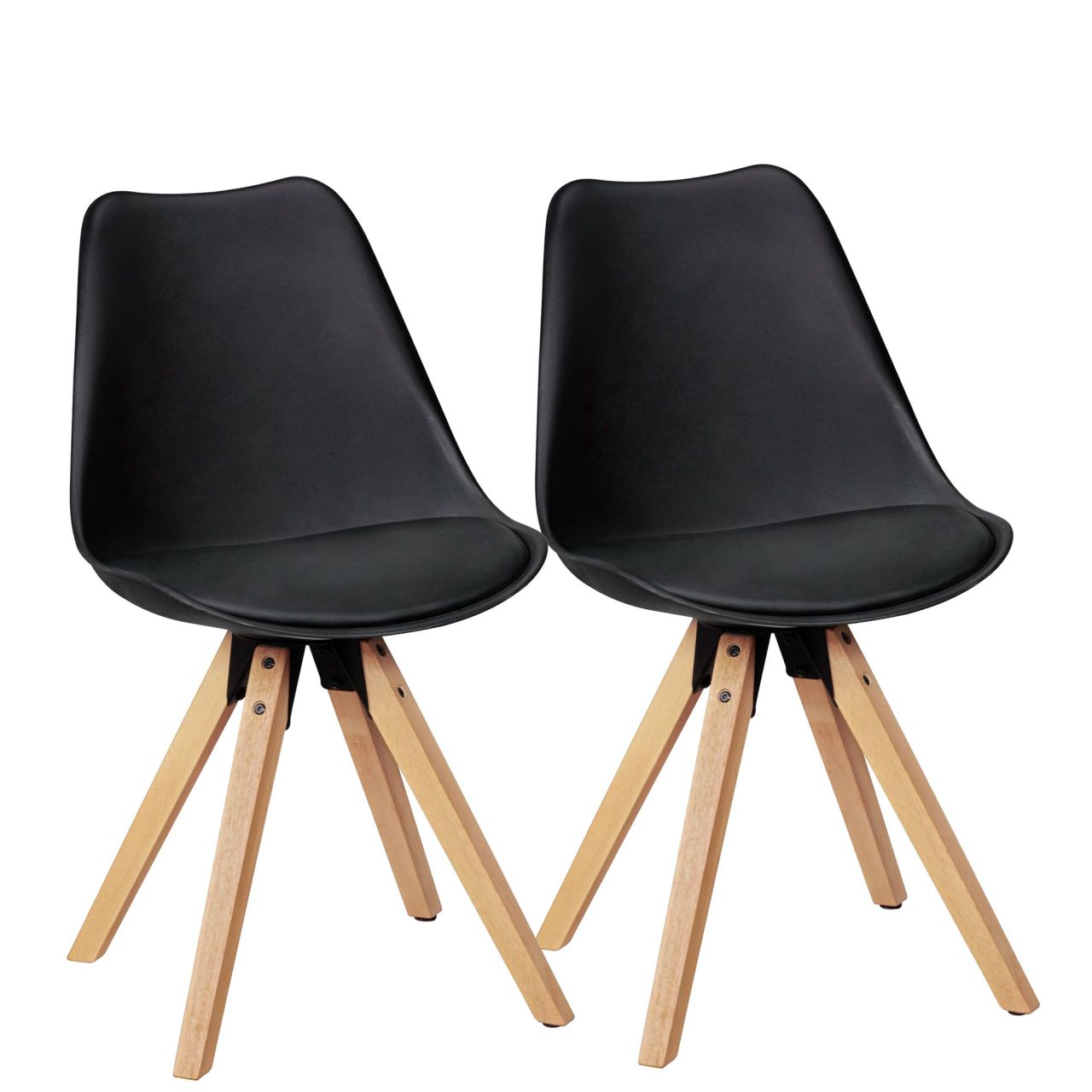 2er Set Retro Esszimmerstuhl LIMA schwarz, Polsterstuhl Skandinavisch Rückenlehne, Küchenstuhl Kunstleder gepolstert