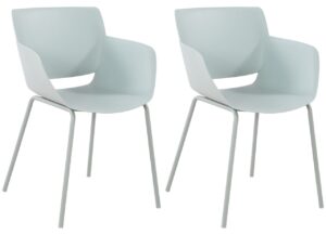 2er Set Stuhl Alpena Hergestellt aus wetterfesten Materialien, kann der Stuhl Alpena nicht nur im Innenbereich, sondern auch im Außenbereich verwendet werden. Der Stuhl ist somit eine tolle Wahl als Gartenstuhl, für die Terrasse und den Balkon, aber er eignet sich auch ideal als Küchenstuhl, Esszimmerstuhl, Bistrostuhl und für Konferenzen. Die Sitzschale besteht aus stabilem, UV-beständigem, wetterfestem Polypropylen, einem hochwertigen Kunststoff. Das Stuhlgestell ist aus pulverbeschichtetem Stahl gefertigt, sodass es korrosionsbeständig ist und nicht rostet. Die Farben von Sitzschale und Stuhlgestellen sind aufeinander abgestimmt. Der Stuhl besitzt außerdem Bodenschoner, sodass empfindliche Untergründe geschont werden. Für die Produktion des Stuhls Alpena werden recycelte Kunststoffe verwendet, um den ökologischen Fußabdruck so gering wie möglich zu halten. Details: Gesamthöhe: 80 c…