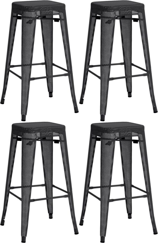4er Set Barhocker Fletcher Ausgestattet mit einem gelochten Metallgestell, kombiniert dieser Hocker visuelle Leichtigkeit mit Stabilität und unterstützt eine Belastbarkeit von bis zu 120 kg. Zusätzlich bietet er eine Fußstütze für verbesserten Sitzkomfort. Er ist stapelbar und eignet sich daher besonders für Orte mit begrenztem Platzangebot. Die Sitzhöhe beträgt 77 cm, wodurch er unter jede Bar und jeden hohen Tisch passt. Die Bodenschoner schützen Böden vor Kratzern und gewährleisten Stabilität. Das Material des Hockers ist leicht zu pflegen, was ihn zu einem praktischen Möbelstück für den täglichen Gebrauch macht, sowohl im privaten als auch im gastronomischen Bereich. Sein Industriedesign fügt sich in moderne Einrichtungsstile ein. Ca. Maße: Gesamthöhe: 77 cm Gesamtbreite: 43 cm Gesamttiefe: 43 cm Sitzhöhe: 77 cm Sitzfläche (BxT): 30 x 30 cm Max. Belastbarkeit: 120 kg Gewicht: 4 kg…
