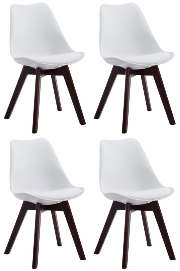 4er Set Besucherstühle Borneo V2 Walnuss Kunstleder weiß