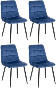 4er Set Esszimmerstühle Antibes Die Polsterstühle Antibes sind die perfekte Ergänzung zu wohnlich modernen Räumen und werden in jedem Zimmer zum Blickfang. Die hohe Rückenlehne und die angenehme und komfortable Polsterung ermöglichen ein bequemes Sitzen auch über einen längeren Zeitraum hinaus. Dank pflegeleichter Materialien sind die Esszimmerstühle jederzeit schnell und einfach zu reinigen. Auf dem modernen 4-Fuß-Gestell aus Metall stehen diese Stühle bei jedem Anlass gut da, zudem befinden sich Bodenschoner unter den Füßen, die ein Verkratzen des Bodens verhindern. Materialzusammensetzung: 100% Polyester Ca. Maße: Gesamthöhe: 84 cm Gesamtbreite: 45 cm Gesamttiefe: 55 cm Sitzhöhe: 48 cm Sitzfläche (BxT): 45 x 38 cm Höhe Rückenlehne: 47 cm Max. Belastbarkeit: 150 kg Gewicht: 5 kg Sitz: Bezug: Samt Rückenlehne bequem gepolstert Angenehme Sitzposition durch Rückenlehne Gestell: Materia…