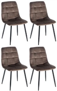 4er Set Esszimmerstühle Antibes Die Polsterstühle Antibes sind die perfekte Ergänzung zu wohnlich modernen Räumen und werden in jedem Zimmer zum Blickfang. Die hohe Rückenlehne und die angenehme und komfortable Polsterung ermöglichen ein bequemes Sitzen auch über einen längeren Zeitraum hinaus. Dank pflegeleichter Materialien sind die Esszimmerstühle jederzeit schnell und einfach zu reinigen. Auf dem modernen 4-Fuß-Gestell aus Metall stehen diese Stühle bei jedem Anlass gut da, zudem befinden sich Bodenschoner unter den Füßen, die ein Verkratzen des Bodens verhindern. Materialzusammensetzung: 100% Polyester Ca. Maße: Gesamthöhe: 84 cm Gesamtbreite: 45 cm Gesamttiefe: 55 cm Sitzhöhe: 48 cm Sitzfläche (BxT): 45 x 38 cm Höhe Rückenlehne: 47 cm Max. Belastbarkeit: 150 kg Gewicht: 5 kg Sitz: Bezug: Samt Rückenlehne bequem gepolstert Angenehme Sitzposition durch Rückenlehne Gestell: Materia…