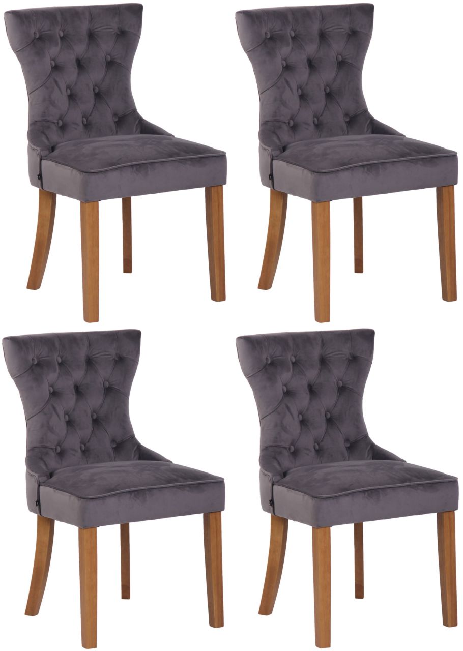 4er Set Esszimmerstühle Franca Samt antik-hell dunkelgrau