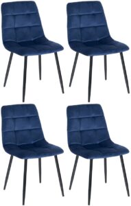 4er Set Esszimmerstuhl Tilde ist ein stilvolles Genusserlebnis Mit dem 4er Stuhl Tilde findet sich Gemütlichkeit am Esstisch ein. Jeder Stuhl trägt mit einer hohen Rückenlehne und einer angenehmen Polsterung dazu bei, dass ein komfortabler Sitzkomfort am Esstisch gewährleistet ist. Der passende Sitzbezug aus Stoff oder Samt lässt sich aus verschiedenen, geschmackvollen Farben auswählen. Für Stabilität sorgt ein modernes 4-Fuß-Gestell aus Metall. Dank seiner pflegeleichten Oberflächen ist das Esszimmerstuhl-Set leicht zu reinigen. Darüber hinaus sind unter dem Gestell Bodenschoner angebracht, welche Kratzer und Spuren auf dem Boden verhindern. Materialzusammensetzung: 100% Polyester Ca. Maße: Gesamthöhe: 83 cm Gesamtbreite: 45 cm Gesamttiefe: 54 cm Sitzhöhe: 47 cm Sitzfläche: 45 x 38 cm Höhe Rückenlehne: 36 cm Max. Belastbarkeit: 150 kg Gewicht: 4 kg Sitz: Bezug: Samt Bezug: Stoff Ange…