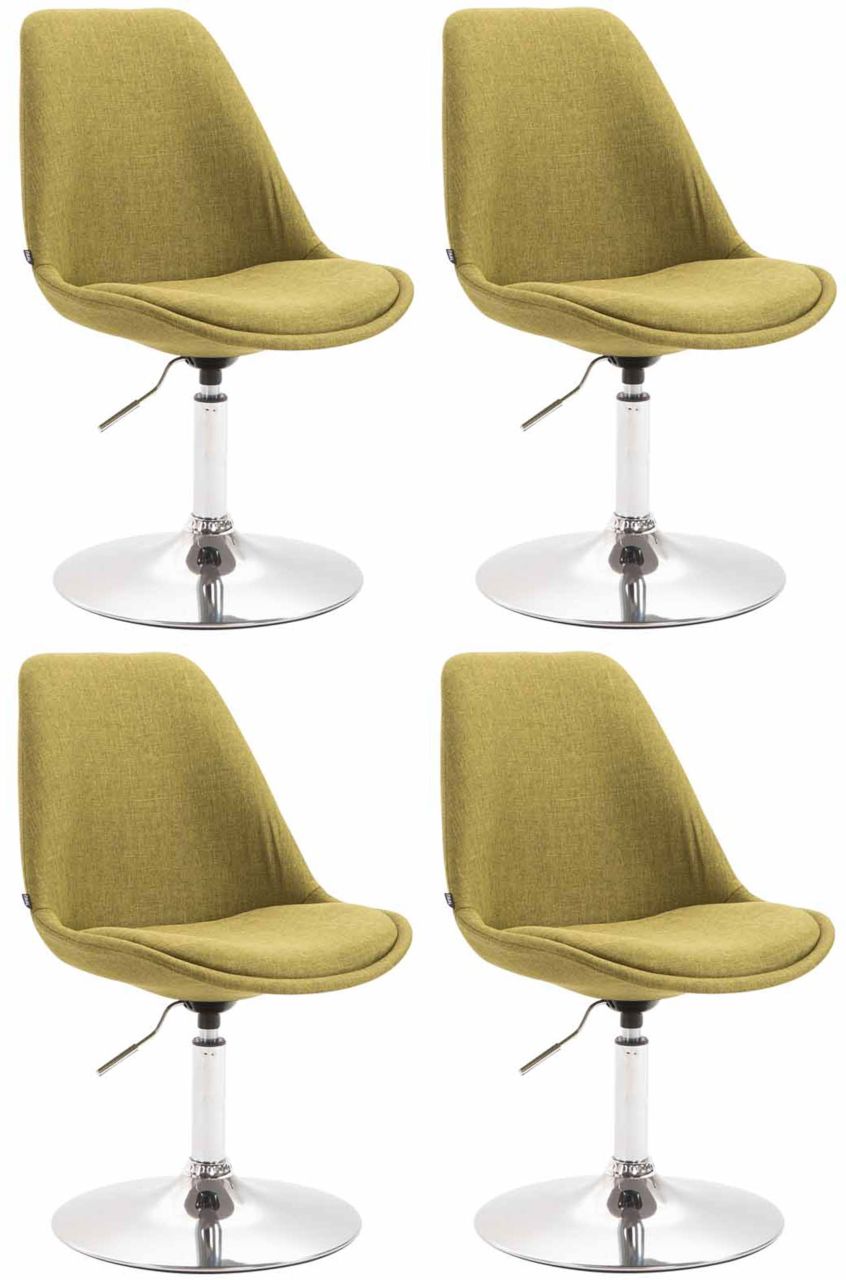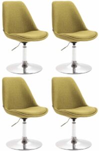 4er Set Esszimmerstühle Maverick Stoff – Modernes Design kombiniert mit Komfort! Die Lehnstühle Maverick sind bequeme und zugleich stilvolle Sitzgelegenheiten für den täglichen Gebrauch. Die mit Stoff überzogenen Sitzschalen sind im Sitz- und Rückenbereich gepolstert, sodass ein bequemes Sitzen auch über einen längeren Zeitraum kein Problem ist. Das Modell ist sowohl höhenverstellbar als auch um 360° drehbar und verspricht somit mehr Flexibilität. Der Trompetenfuß aus Metall in Chromoptik oder in matt- schwarzem/weißem Metall steht für hohe Stabilität und Langlebigkeit. Diese Polsterstühle verleihen ein modernes Flair und ergänzen wunderbar jedes Wohnambiente. Materialzusammensetzung: 100% Polyester Ca. Maße: Gesamthöhe: 76 – 81 cm Gesamtbreite: 48 cm Gesamttiefe: 57 cm Sitzhöhe: 43 – 48 cm Sitzfläche (BxT): 48 x 52 cm Höhe der Rückenlehne: 32 cm Gewicht: 6 kg Sitz: Bezug: Stoff Höhen…