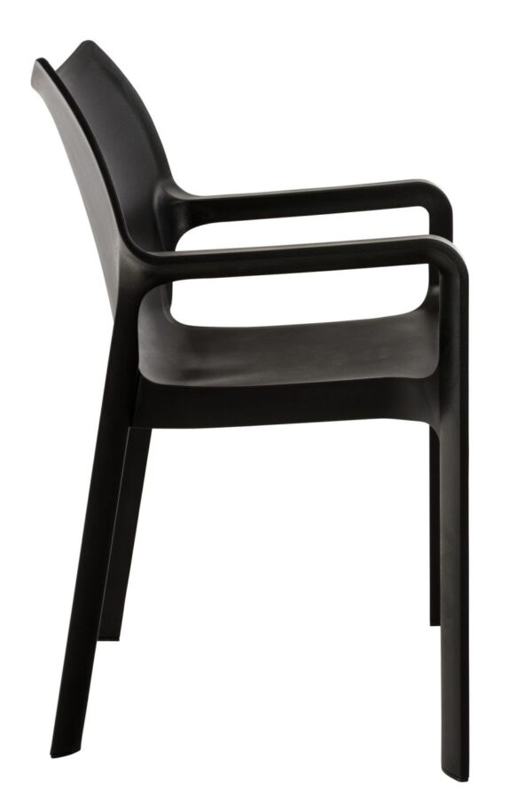 4er Set Stuhl Diva Trendiger Look und eine breite Farbpalette, dass zeichnet den Stuhl Diva aus. Dieser moderne Stuhl ist ein echter Allrounder und glänzt durch seine Vielseitigkeit. Nutzen Sie ihn als Sitzmöglichkeit für den Partyraum oder als ausgefallenen Hingucker in Ihrem Wohnbereich, dem Garten oder auf Messen. Die Stühle sind UV-beständig und wasserresistent. Selbst häufige und intensive Sonneneinstrahlung lässt den Kunststoff nicht vergilben oder ausbleichen. Die Farbtiefe der Stühle bleibt so lange erhalten. Bei nicht gebrauch kann der Stuhl Diva praktisch gestapelt und verstaut werden. Ca. Maße: Gesamthöhe: 84 cm Gesamtbreite: 57 cm Gesamttiefe: 53 cm Sitzhöhe: 46 cm Sitzfläche (BxT): 49 x 40 cm Höhe Armlehne: 64 cm Max. Belastbarkeit: 160 kg Gewicht: 4 kg Materialzusammensetzung: 100% Polypropylen Sitz: Material: Kunststoff (Polypropylen) Angenehme Sitzposition durch Rücken…