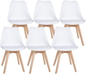 6er Set Esszimmerstuhl Ramsey Dieser Stuhl ist ein Leichtgewicht von lediglich 4 kg und dennoch außerordentlich stabil. Die Sitzhöhe von 46 cm gewährleistet eine komfortable und ergonomische Sitzposition, während die großzügige Sitzfläche bequemes Sitzen ermöglicht. Die integrierten Bodenschoner schützen Ihre Böden vor unerwünschten Spuren. Die Rückenlehne stützt Ihre Wirbelsäule optimal. Das Gestell des Stuhls ist aus hochwertigem Holz gefertigt und verleiht ihm Stabilität und natürlichen Charme. Die Sitzfläche besteht aus Kunstleder, das nicht nur visuell ansprechend ist, sondern auch leicht zu pflegen und äußerst strapazierfähig. Materialzusammensetzung: 100% Polyurethan / 100% Polypropylen Ca. Maße: Gesamthöhe: 83 cm Gesamtbreite: 49 cm Gesamttiefe: 50 cm Höhe Rückenlehne: 40 cm Sitzfläche (BxT): 39 x 44 cm Sitzhöhe: 46 cm Gewicht: 4 kg Sitz: Material: Kunststoff mit Kunstleder Si…