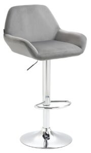 Barhocker Braga Samtbezug mit Metallgestell Der Barhocker Braga ist ein moderner Sitzhocker mit einem Metallgestell in verschiedene Farben. Mit seiner schicken Optik ist dieser Barstuhl eine ideale Sitzmöglichkeit für Küche, Esszimmer, Wohnzimmer oder die Hausbar. Der Sitz und die Rückenlehne sind mit einem pflegeleichten Samtbezug bezogen und bieten durch ihre Polsterung einen hohen Sitzkomfort. Eine integrierte Fußstütze fördert das Sitzen in aufrechter Haltung. Die Sitzhöhe kann mittels eines Gaslifts stufenlos angepasst werden. Die Sitzfläche ist um 360° drehbar, was zusätzliche Flexibilität ermöglicht. Das Gestell besteht aus stabilem Metall und sorgt für einen sicheren Stand. Bodenschoner unter dem Metallgestell beugen Beschädigungen empfindlicher Böden vor. Details: Gesamthöhe: 89 – 109 cm Gesamtbreite: 51 cm Gesamttiefe: 52 cm Sitzhöhe: 63 – 83 cm Sitzfläche (B x T): 35 x 37 c…