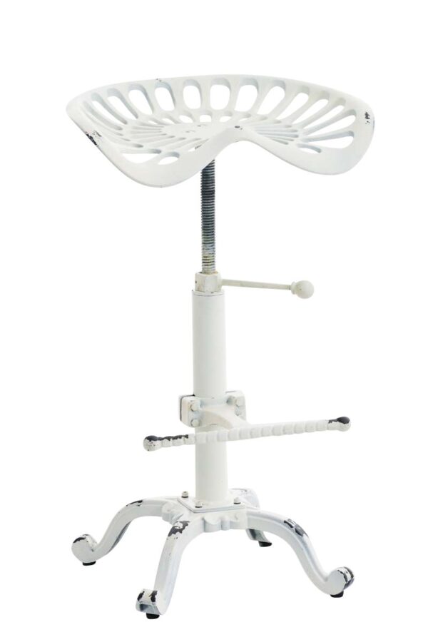 Barhocker Butch Außergewöhnlicher Look mit herkömmlichen Materialien, das macht diesen Hocker zu einem ganz besonderen Highlight. Der gusseiserne Sitz bietet auch ohne jede Polsterung besten Sitzkomfort, denn die Sitzfläche ist durch eine leichte Wölbung körpergerecht geformt. Die höhenverstellbare Sitzfläche, welche sich durch die Feststellkurbel unter dem Sitz einstellen lässt und somit ein lästiges Wackeln verhindert, bietet eine gemütliche Sitzgelegenheit bei jeder Körpergröße. Außerdem optimiert die angenehme Fußstütze, die ebenfalls höhenverstellbar ist, den Sitzkomfort zusätzlich. Die Standfüße können mithilfe von Bodenschonern einzeln in der Höhe angepasst werden, somit gehört lästiges Wackeln der Vergangenheit an. Das verzierte Gestell aus pulverbeschichtetem Metall trägt dazu bei dem Hocker sein einzigartiges Design zu verleihen und gewährleistet einen sicheren Stand. Sitz: …