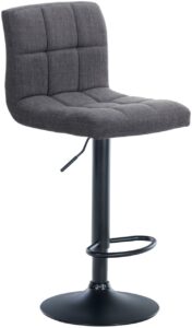 Barhocker Calma Stoff Der Barhocker Calma vereint Funktionalität und Komfort in einem stilvollen Design. Dank der angenehmen Polsterung des Sitzes ist er die perfekte Wahl für jede Veranstaltung oder den Privatgebrauch. Dieses Modell ist stufenlos höhenverstellbar und passt sich somit jeder Sitzposition an. Dank der Rückenlehne, die 360° drehbaren Sitzfläche und einer komfortablen Fußstütze lässt sich über Stunden hinweg bequem sitzen. Die Sitzfläche ist mit einem hochwertigen Stoff bezogen und das Gestell aus Metall ist in den eleganten Farben Schwarz oder Weiß erhältlich. Zudem ist der Barhocker Calma einfach und schnell zu reinigen. Materialzusammensetzung: 100% Polyester (Stoff) Ca. Maße: Gesamthöhe: 94 – 114 cm Gesamtbreite: 46 cm Gesamttiefe: 47 cm Sitzhöhe: 64 – 84 cm Max. Belastbarkeit: 110 kg Gewicht: 8 kg Sitz: Bezug: Stoff gesteppt Die Rückenlehne fördert eine angenehme Sit…
