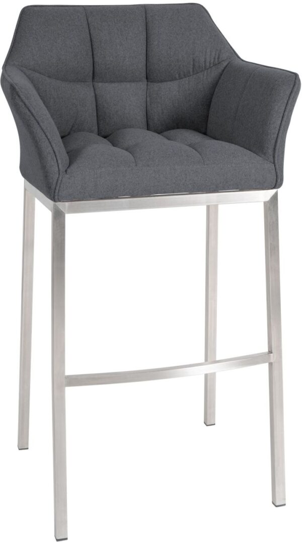 Barhocker Damaso Filz-Bezug mit Vierfußgestell Der Barhocker Damaso vereint Eleganz und Komfort in perfekter Harmonie. Sein gepolsterter Filz-Bezug in neutralen Farben verleiht jedem Raum eine zeitlose Note. Die Rückenlehne und Armlehnen sorgen für zusätzlichen Sitzkomfort und eine entspannte Haltung. Dank des stabilen und standsicheren Vierfußgestells mit einer Querstrebe zwischen den vorderen Stuhlbeinen können Sie Ihre Füße bequem ablegen und gemütlich verweilen. Das Edelstahlgestell ist silberfarben, in matt-schwarz oder in matt-weiß erhältlich und verleiht dem Hocker einen modernen Touch. Der Tresenstuhl Damaso ist die perfekte Ergänzung für Bars, Küchentresen oder Lounges und bietet höchsten Sitzgenuss in stilvollem Design. Materialzusammensetzung: 70 % Polyester, 30 % Wolle Details: Gesamthöhe: 110 cm Gesamtbreite: 64 cm Gesamttiefe: 48 cm Sitzhöhe: 83 cm Sitzfläche (B x T): 40…
