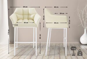 Barhocker Damaso mit 4-Fuß Gestell weiß creme