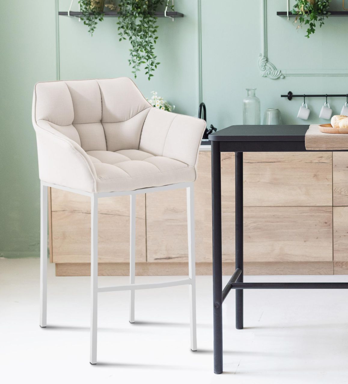 Barhocker Damaso Stoff mit 4-Fuß Gestell weiß weiß