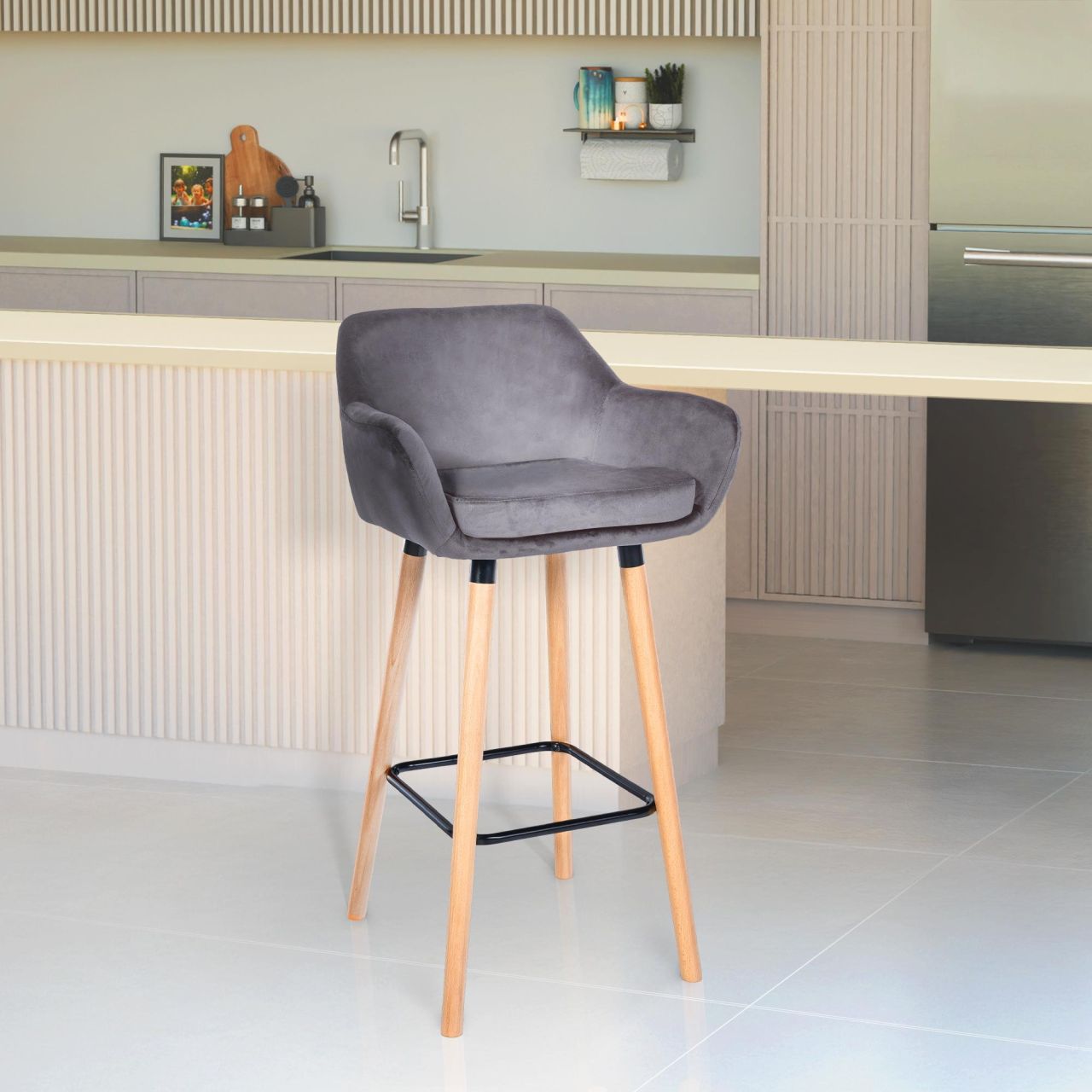 Barhocker Grant Samt grau