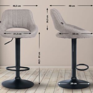 Barhocker Hoover Stoff 4-Fuß Gestell Chrom dunkelgrau
