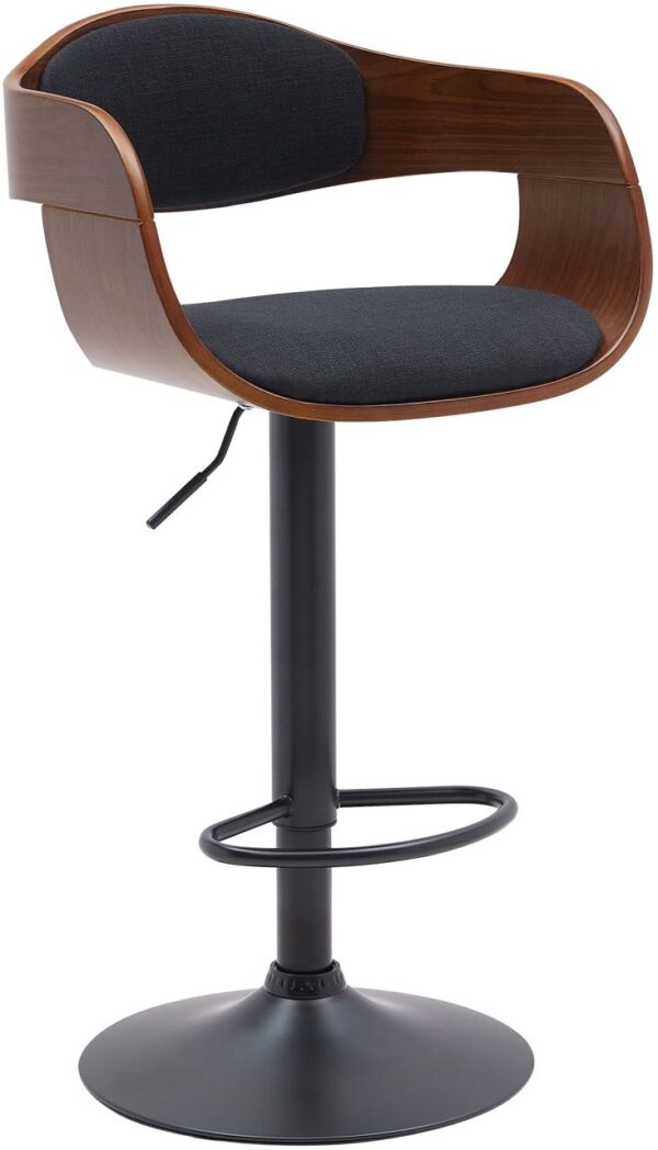 Barhocker Kingston Der Barhocker Kingston B besteht aus einer Holzsitzschale, die im Rücken- und Sitzbereich mit einem bequemen und dicken Polster versehen ist. Der Sitz ist um 360° drehbar und lässt sich somit individuell der gewünschten Sitzposition anpassen. Der Barstuhl steht auf einem robusten Gestell aus Metall in matt-schwarz. Mittels eines Gaslifts ist der Barhocker stufenlos höhenverstellbar und kann so individuell jeder Körpergröße und Thekenhöhe angepasst werden. Die integrierte Fußstütze trägt zu einer geraden und aufrechten Sitzposition bei. Unter dem Trompetenfuß befindet sich ein Bodenschoner, der Ihren Fußboden vor unschönen Kratzern bewahrt, so kann der Barhocker an jedem Ort genutzt und individuell verschoben werden. Dieses Modell ist in bis zu drei Holzsitzfarben: natura, walnuss oder grau erhältlich. Materialzusammensetzung: 100% Polyurethan / 100% Polyester Ca. Ma…
