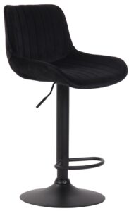 Barhocker Lentini Samt Dieser Barhocker verleiht jedem Raum einen exklusiven Look und besticht nicht nur durch seine hervorragenden Sitzeigenschaften, sondern auch durch sein modernes Design. Der Sitz ist mit einem pflegeleichten Samtbezug versehen. Mithilfe des Gaslifts lässt sich dieses Modell in der Wunschhöhe stufenlos einstellen, sodass er für jede Thekenhöhe bestens geeignet ist. Die Fußstütze, die einen sehr guten Sitzkomfort gewährleistet, ist synchron mit der Höhe des Sitzes verstellbar. Die Sitzfläche ist mit der Fußablage um 360° drehbar. Das Gestell besteht wahlweise aus Metall in Chromoptik, weißem oder schwarzem Metall. Zudem befinden sich unter dem Trompetenfuß Bodenschoner, die ein Verkratzen der Oberflächen verhindern. Materialzusammensetzung: 100% Polyester Ca. Maße: Gesamthöhe: 86 – 108 cm Gesamtbreite: 50 cm Gesamttiefe: 50 cm Sitzhöhe: 60 – 82 cm Sitzfläche (BxT):…