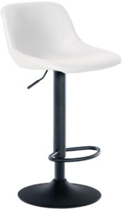 Barhocker Loft Der Barhocker Loft verleiht jedem Raum eine exklusive Note und überzeugt nicht nur durch seine hervorragenden Sitzeigenschaften, sondern auch durch sein modernes Design. Eine bequeme Rückenlehne und die angenehme Polsterung des Sitzes bieten einen hohen Komfort. Die Sitzfläche ist wahlweise in Stoff, Samt oder Kunstleder erhältlich. Der Trompetenfuß des Tresenstuhls ist um 360° drehbar und besitzt eine Fußstütze, wodurch ein angenehmes Sitzen über eine längere Zeit gewährleistet ist. Das Metall-Gestell in Schwarz ist höhenverstellbar und bietet einen sicheren Stand. Außerdem ist das Gestell mit Bodenschonern ausgestattet, um ein Zerkratzen des Bodens zu vermeiden. Durch seine unterschiedlichen Farb- und Materialkombinationen ist dieser Thekenstuhl immer eine ausgezeichnete Wahl, ob für die Küche, Wohnzimmer, Lobby oder Esszimmer. Materialzusammensetzung: 100% Polyester …