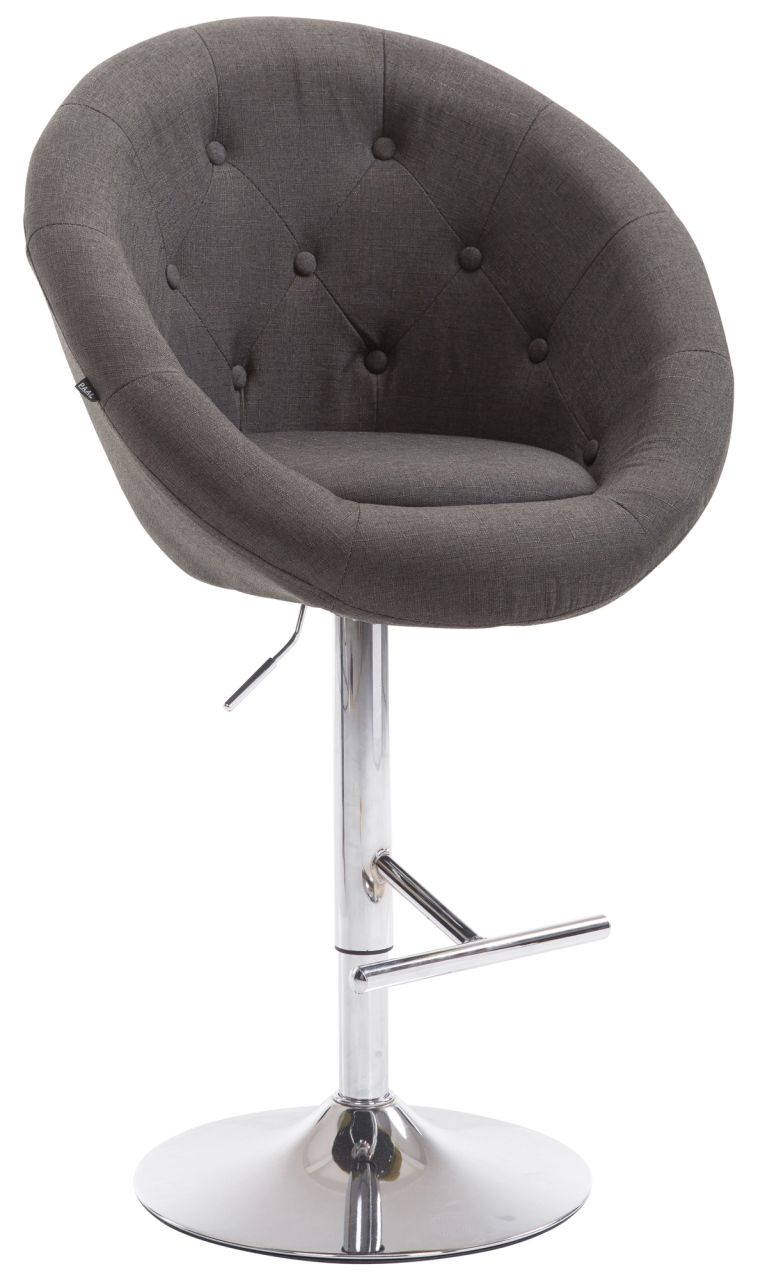 Barhocker London V2 Dieser Thekenhocker beeindruckt nicht nur mit seinem Design, sondern auch mit seiner Gemütlichkeit. Die gut gepolsterte Sitzfläche ist gesteppt und mit einem pflegeleichten Stoffbezug versehen. Durch die auffällige Rückenlehne, die in eins in die Armlehne übergeht, bietet dieser Hocker guten Sitzkomfort, auch über mehrere Stunden. Zudem ist dieser um 360° drehbare Thekenhocker höhenverstellbar und passt sich somit ideal an jede Körpergröße an. Der Trompetenfuß aus Metall ist mit einer stilvollen Fußstütze versehen, die das Sitzen noch bequemer gestaltet. Das Gestell ist zusätzlich mit einem Bodenschoner versehen, dieser verhindert Kratzer und Beschädigungen des Bodens. Ein absolutes Highlight für gemütliche Stunden an der Bar. Materialzusammensetzung: 100% Polyester Ca. Maße: Gesamthöhe: 107 – 128 cm Gesamtbreite: 65 cm Gesamttiefe: 57 cm Sitzhöhe: 66 – 87 cm Sitzf…